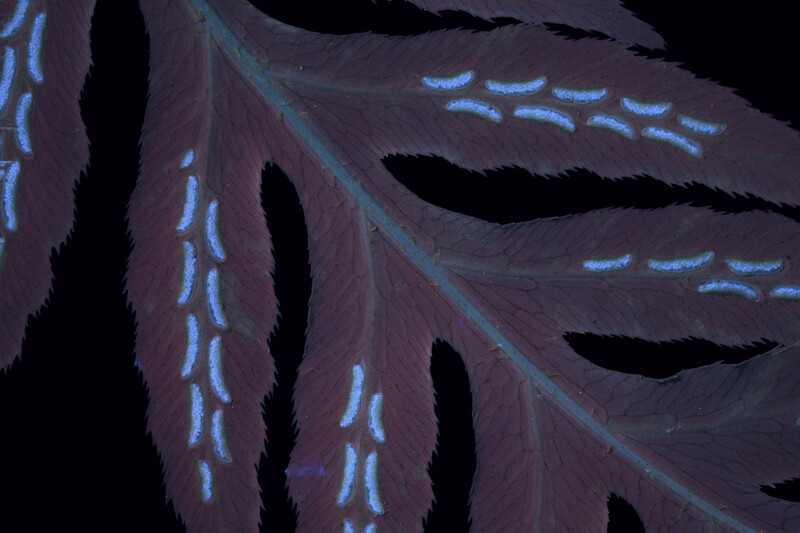 Comments: Plant grown from spores by David Perasso. The picture taken under UV Light.