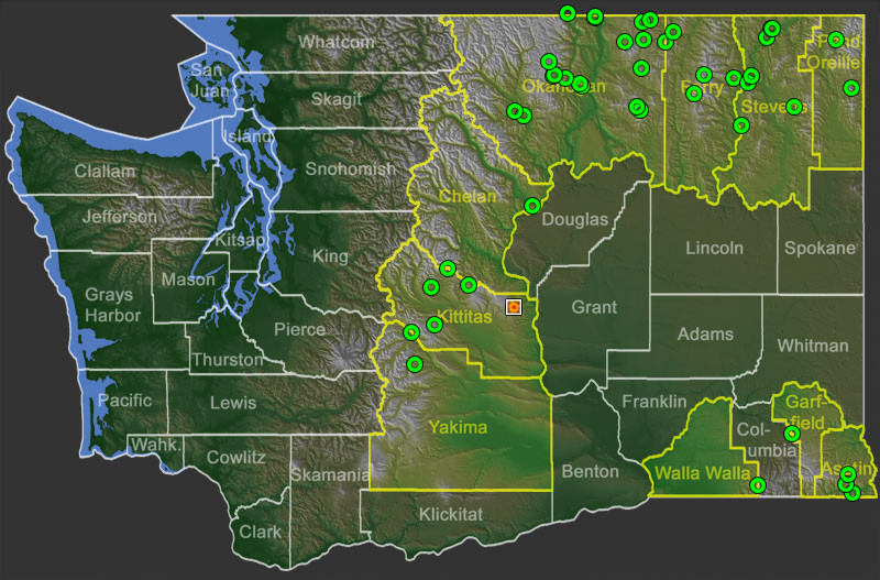 Select a marker on the map to view specimen label data or photo metadata, or click on a highlighted county to see all photos and specimens in that county. (Specimens and photos lacking coordinates are not displayed on the map but are included in the county list.)