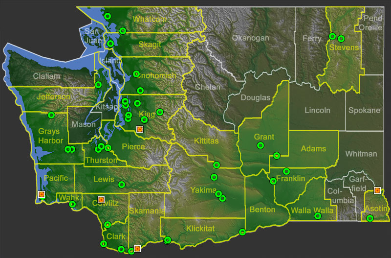 Select a marker on the map to view specimen label data or photo metadata, or click on a highlighted county to see all photos and specimens in that county. (Specimens and photos lacking coordinates are not displayed on the map but are included in the county list.)