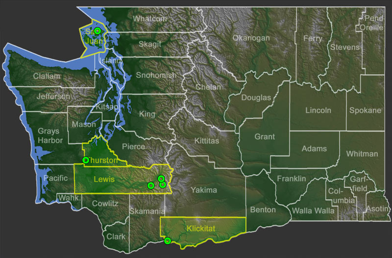 Select a marker on the map to view specimen label data or photo metadata, or click on a highlighted county to see all photos and specimens in that county. (Specimens and photos lacking coordinates are not displayed on the map but are included in the county list.)